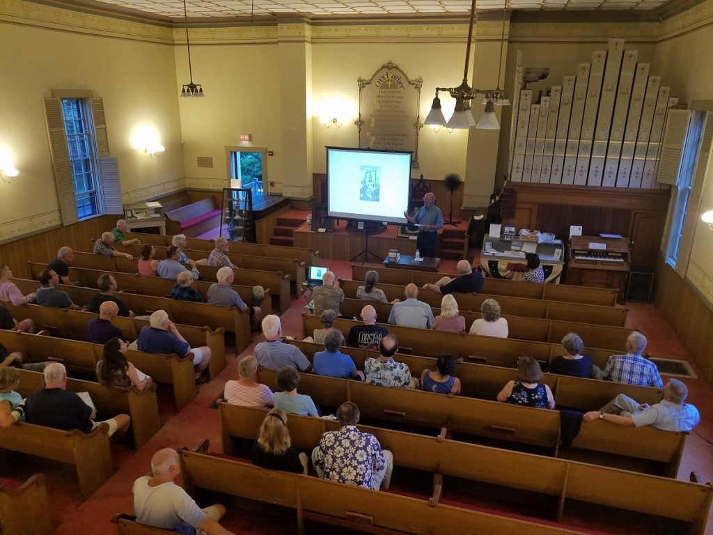 Wednesday 11 December 2019 at 630 PM at the Library – Town Historian Jim Garman presented a lecture on “Steamboats on Narragansett Bay and the Sakonnet River” at the Portsmouth Free Public Library. This illustrated lecture was co-sponsored by the Library and the Portsmouth Historical Society. The talk included many photographs and information on many of the Bay/Sound steamboats, including the Fall River Line and the Sakonnet Line.