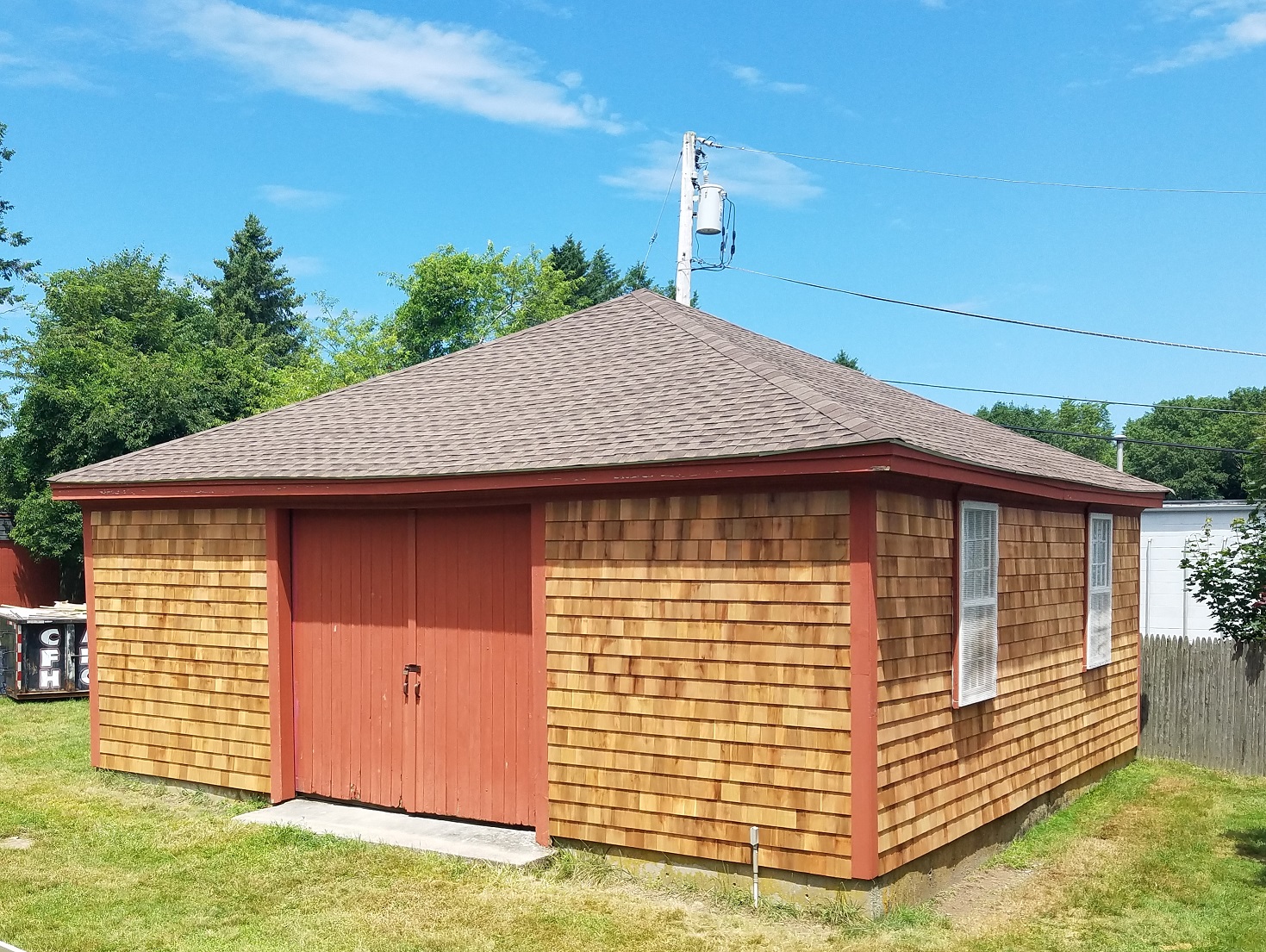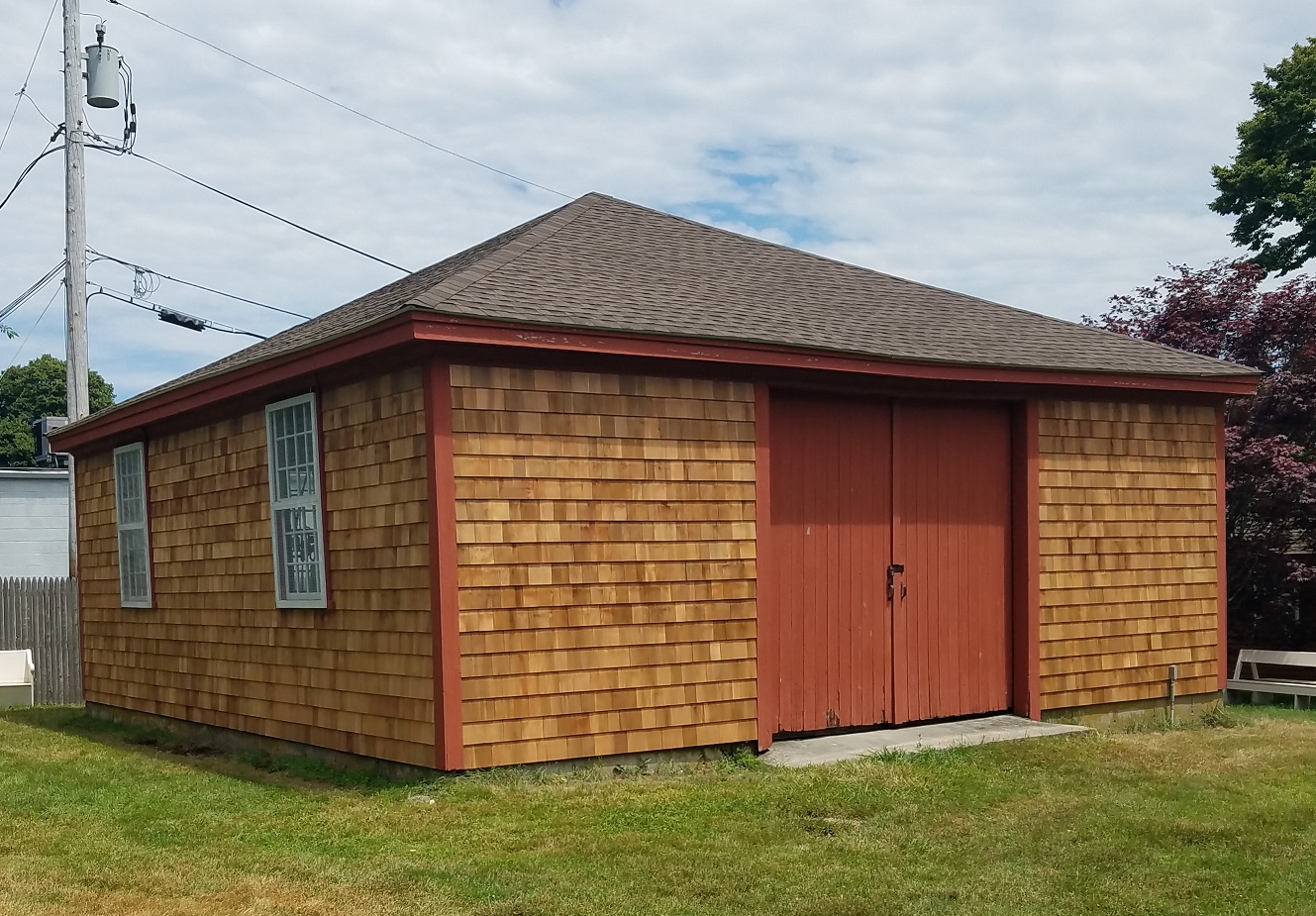 In 2019 The Old Town Hall got a “new” look with a new roof and new red cedar siding.