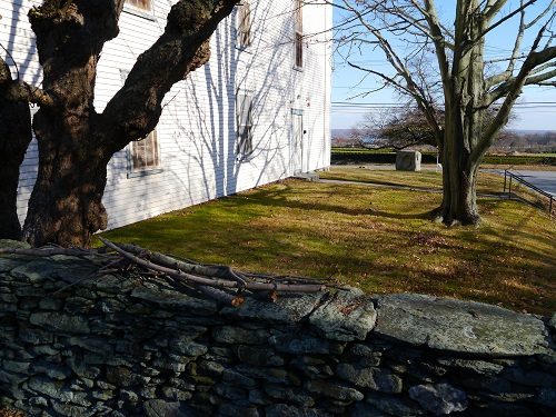 The stone wall in back of the Portsmouth Historical Society building marks the original boundary of the Christian Union Church lot that was bought in 1824.