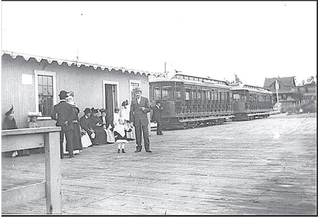 Passengers wait for the ferry BRISTOL after debarking from Newport and Providence Railway open trolley cars at the Bristol Ferry terminal. [PHOTO COURTESY PORTSMOUTH HISTORICAL SOCIETY]