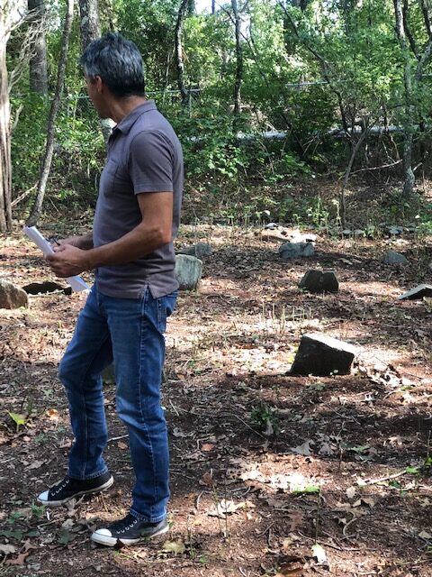 A tour was led by Stephen Luce at three cemeteries in Lawton Valley! First visited was the stone cellar hole. This was the home for many of those interred nearby. From there, we will walk to the oldest cemetery. It is currently unrecorded and contains several unmarked gravestones. It was discussed why they are unmarked. Next, they walked to the well-preserved Captain Job Lawton Cemetery. It is surrounded by a stone wall and contains several beautifully carved grave markers from the 1700’s. Finally, they drove across the street to visit the seldom seen Town Asylum/Poor Farm Cemetery. Located on the rim of Lawton Valley and just south of Raytheon, this cemetery is the final resting place for many of the most unfortunate and vulnerable individuals from the 19th century. All the grave markers are uninscribed. However, I will relate some of their names and stories of their time at the Poor Farm including their time in the Asylum dungeon!