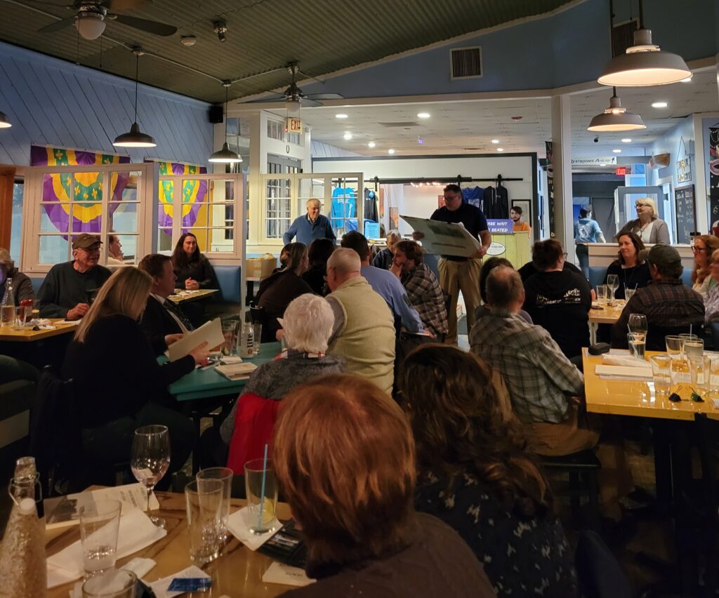 The Portsmouth Historical Society hosted its Fifth Annual Portsmouth History Trivia Night on Thursday February 16, 2023 from 6:30 PM to 8:30 PM at The Gulf Stream Bar & Grille, a perennial host for the event, whose building itself is a part of Portsmouth’s history. The restaurant is housed in an original Quonset Hut built in 1942 as part of the US Navy’s PT-Boat Training Center (attended by JFK) at Melville. The space was converted into a restaurant over 30 years ago and began operation as The Gulf Stream Bar & Grille in 2016. Dinner and drinks will be available. Twelve teams participated with the “North Enders” (with teammates Jerry and Donna Macomber, Bob Hamilton, Lois Ryan, Anna Jones, Dave Duggan) coming out on top closely followed by the “Quonset Hut *killers*” and the “Locals”.
