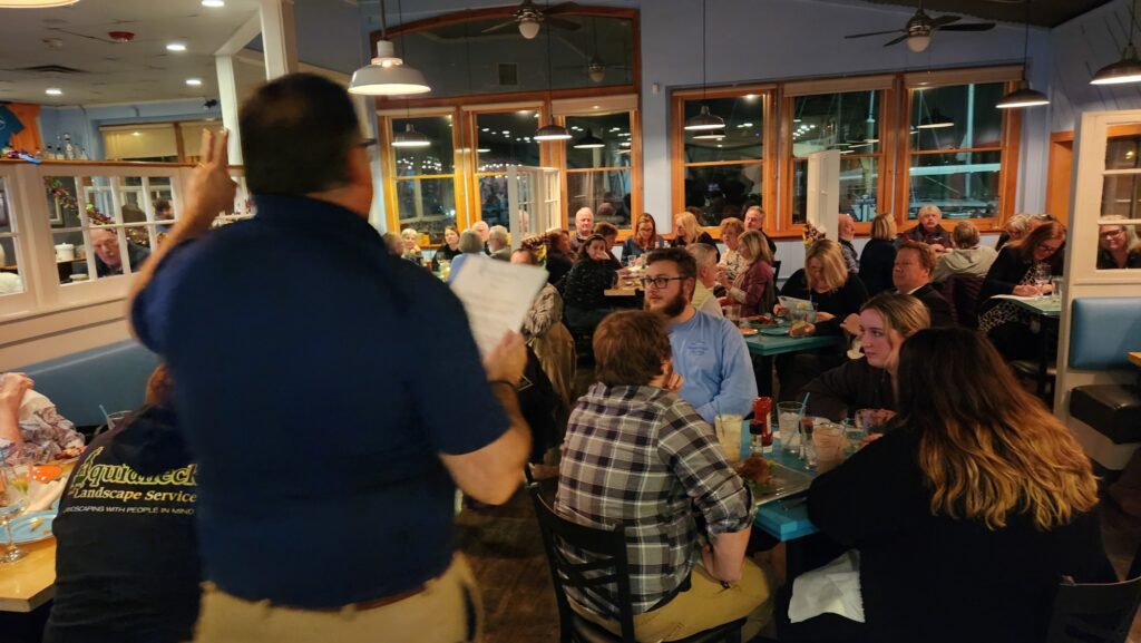Emceeing this entertaining event again this year was Joe Cassady, a Portsmouth High School History teacher. Joe’s quick-wit and energetic style as master of ceremonies provided an evening of fun for the contestants and the audience. Teams consisted of 2 to 6 players. Trivia questions focused on Portsmouth’s rich history and included a diverse selection of questions relating to landmarks, individuals, events and more. Questions were challenging and created by Portsmouth Town Historian, Jim Garman, was on hand to judge the event