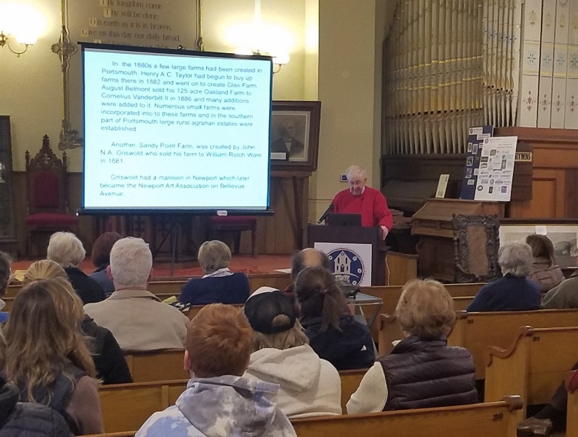 March 23, 2022. Another of the “Gentlemen’s Farms” in the southern part Portsmouth at the beginning of the 20th century was Sandy Point Farm. It was purchased in 1902 by Reginald Vanderbilt. Reginald was the youngest son of Cornelius and Alice Vanderbilt of the Breakers and the brother of Alfred Gwynne Vanderbilt who had a notable established horse farm at Oakland farm nearby. Reginald  was a very active horseman and much involved in horse shows, both locally and on the national level. He greatly enlarged the farm at Sandy Point; it extended from the East Main Road to the Sakonnet River. It was a showplace of horse people as well as Newport society. When Reginald died in 1925 he left a very young wife, Gloria Morgan Vanderbilt, and a one year-old daughter, Gloria. The history of Sandy Point Farm is an important part of the history of Portsmouth. The lecture was part of a series “Gentleman’s Farms of South Portsmouth.